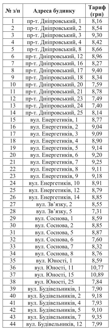 У кожного будинку свій тариф,  з яким Ви можете ознайомитись у  таблиці.