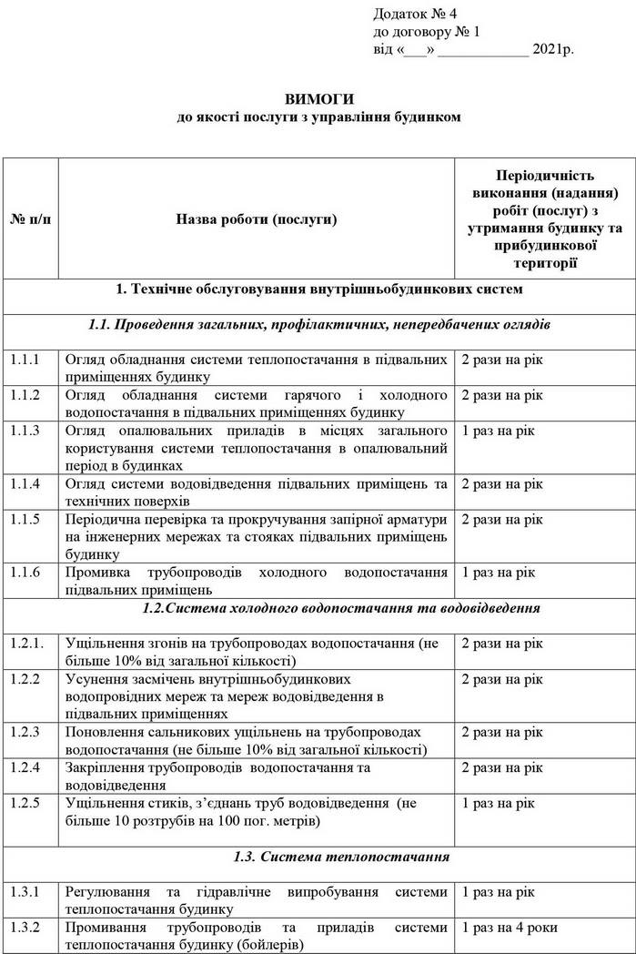 Вимоги до якості послуги з управління будинком (додаток№4)